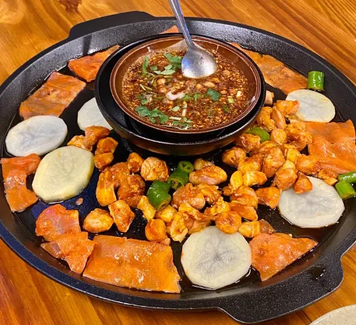 这绝对是毕节的代名词!您找个小巷子里的店,坐下就吃。洋芋粑、豆干、魔芋、牛肉,全在凸锅上滋滋冒油。纳雍的用薄豆干包着吃,织金的要配八步豆干,大方的活油蘸水是一绝。人均30多块钱,配上一碗冰粉,那滋味,神仙也不换。推荐去同心步行街或者七星关的老街找店,越破越好吃。