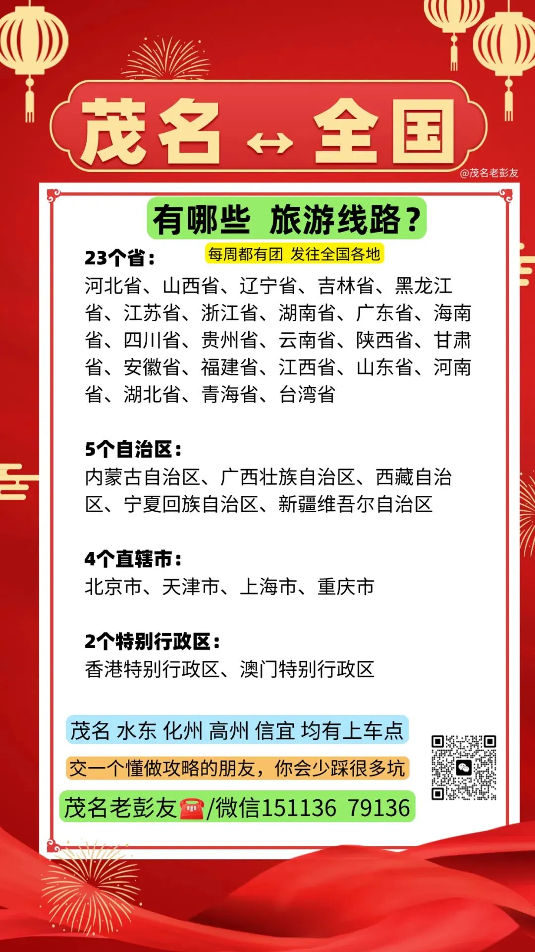 茂名旅游团报名入口:茂名老彭友电话/微信:15113679136