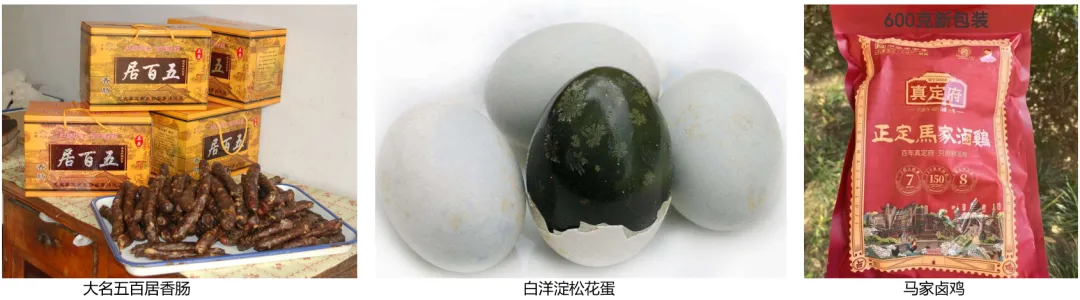 ➧其他:白洋淀松花蛋(保定安新),马家卤鸡(石家庄正定),大名五百居香肠。