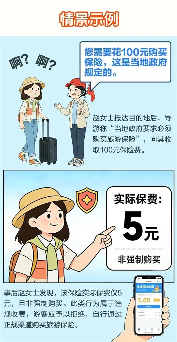 小贴士 部分旅行社及导游可能会在行程中临时增加自费项目、购物场所等,并诱导甚至强制游客接受,然后临时签订补充合同规避监管。建议游客在签订旅游合同时明确此条款,非因不可抗力不得解除或变更合同及提前通知期限,限制旅行社随意变更、临时变更合同等行为。 09 核对保险投保情况 重点核对旅行社是否为游客投保旅游人身意外伤害保险。如需游客自行投保,游客可选择自行购买,也可委托旅行社代购,要索要并留存保单凭证。