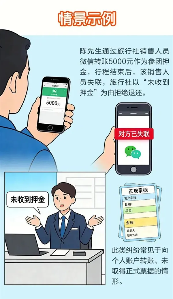 小贴士 部分旅行社在游客落地接待时以政府要求购买保险等理由诱导欺骗游客购买价格明显高于正常价格的旅游人身意外伤害保险,有的保险费仅为几元,但收取游客高达百元。游客应予以拒绝并自行购买。 10 核实押金、保证金收取规则 重点核实旅行社收取报名、参团押金、保证金等情况,交纳押金、保证金应当在合同中明确使用及退还规则,索要押金凭证。