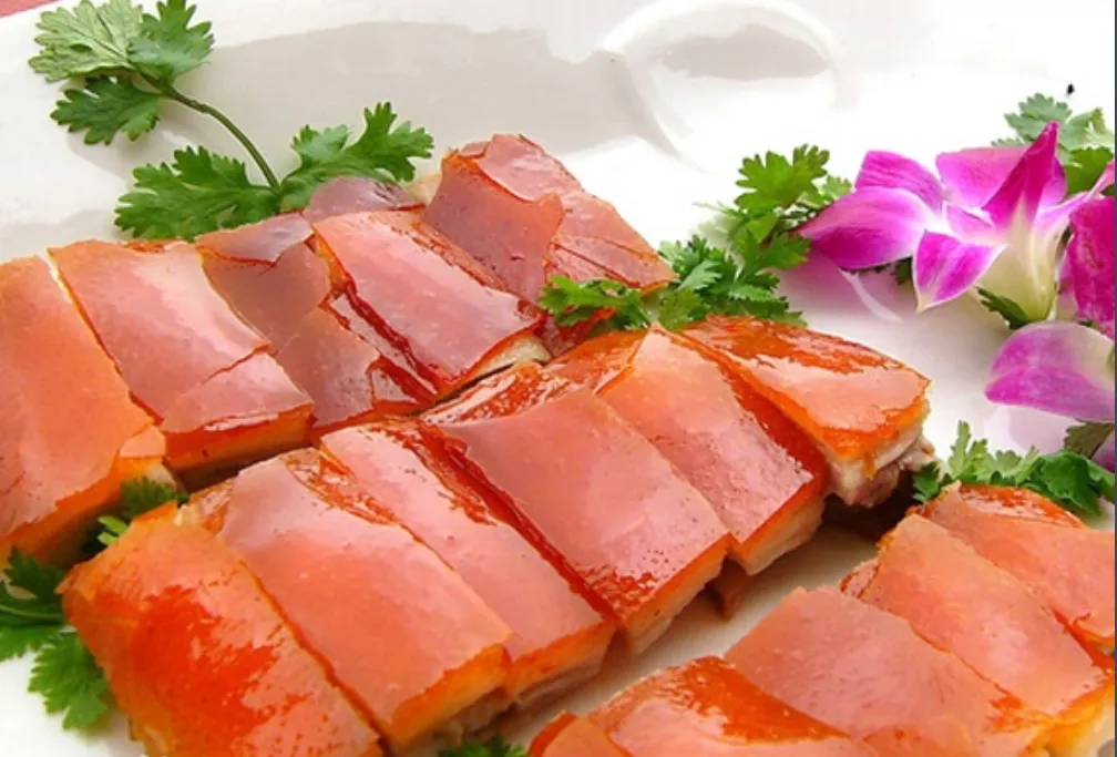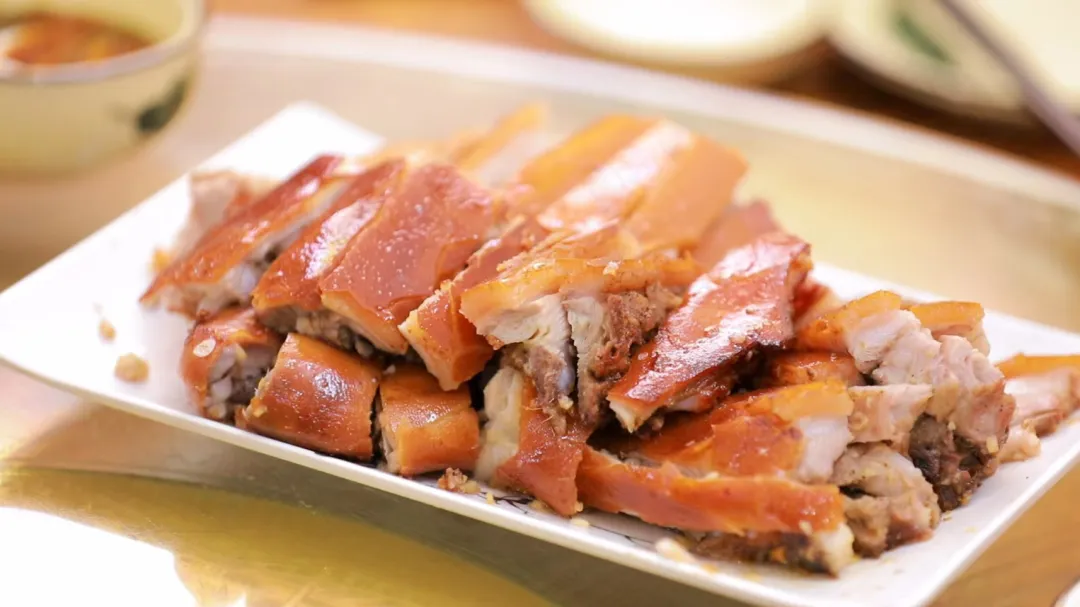 必吃top1!黑背白肚的乳猪,皮如琥珀透光,肉似凝脂含香,“咔哧”一口,酥脆与鲜嫩在齿间碰撞,趁热吃口感最佳。