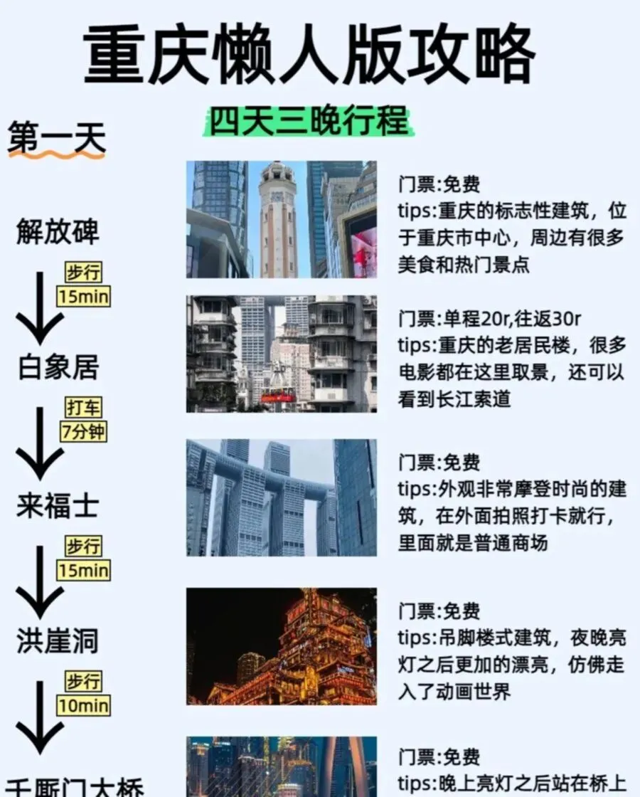 重庆旅游攻略|四天三晚不绕路、重庆旅游攻略