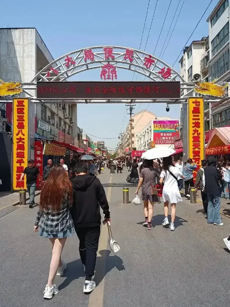• 八大局便民市场:淄博烟火气的心脏,670米长街藏着430余家商户。必吃炒锅饼、紫米饼、炸肉、牛奶帽,顺路淘琉璃摆件、手串,免费试吃的炒锅饼别错过。夜间亮化升级,花灯高悬,氛围感拉满。