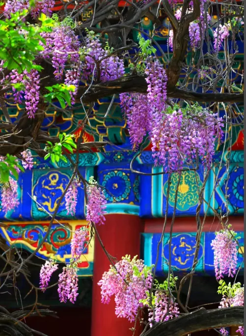 市区内的古风赏花天花板!孔庙和国子监作为元明清三代最高文教圣地,红墙黄瓦、千年古柏环绕,自带庄严肃穆的中式风骨,五一期间,院内百年紫藤迎来盛花期尾声,错过再等一年。