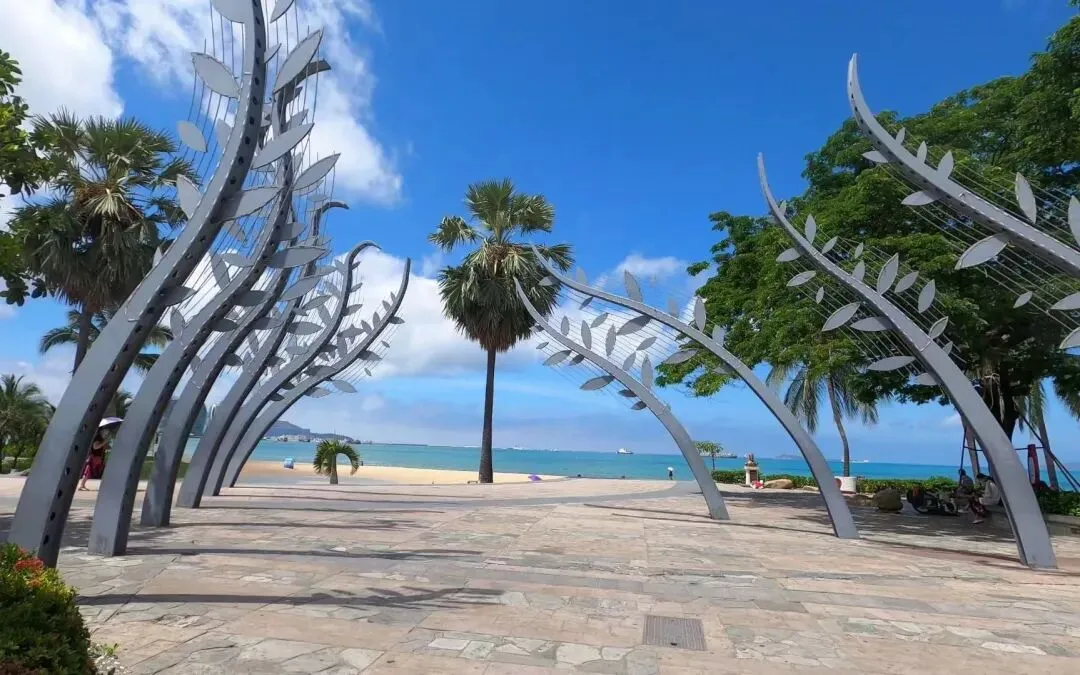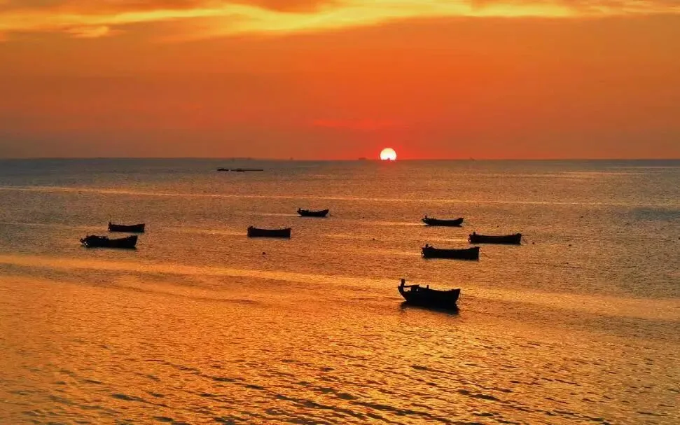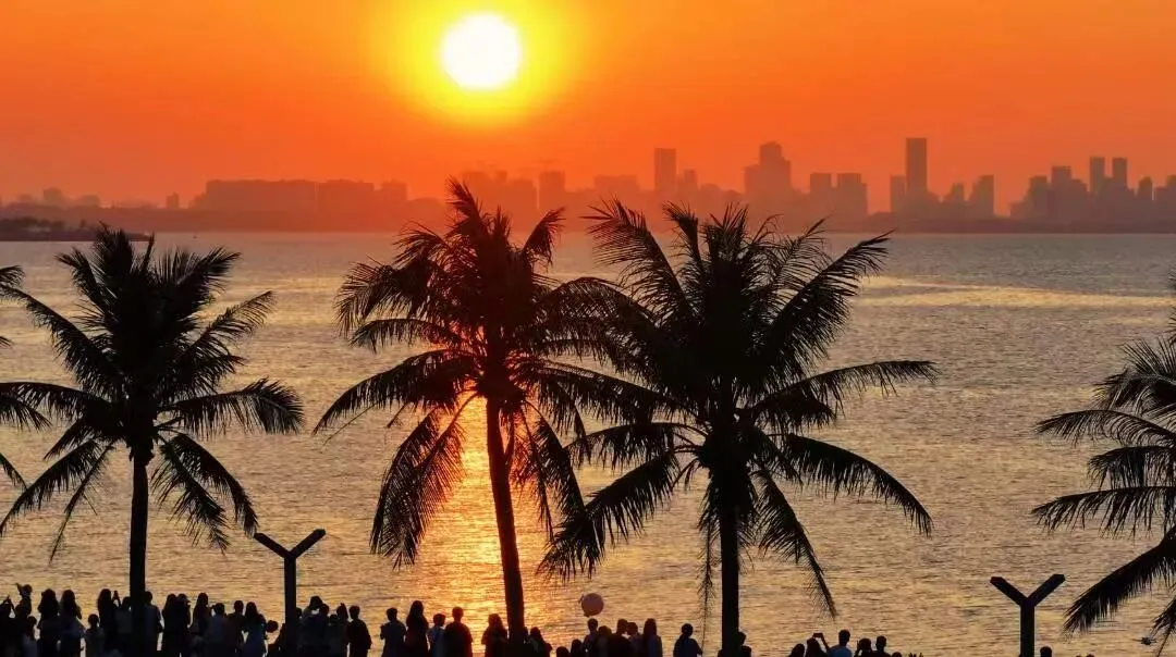 20km海岸日落,椰子树+橘色海面,拍情侣/氛围感大片,导航「海月广场」最佳。