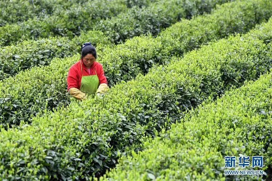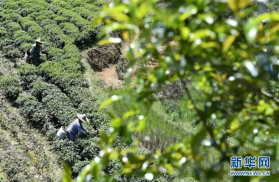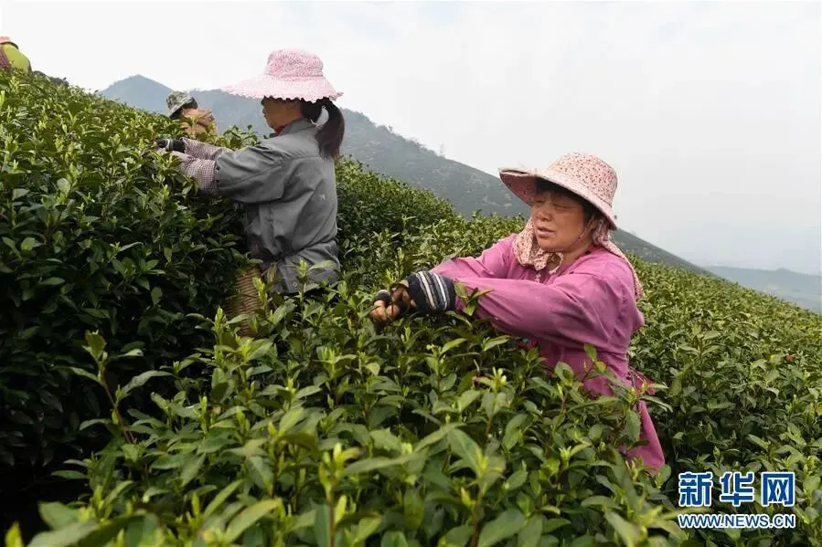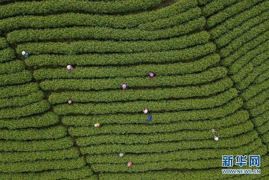 合作社社员在福建省寿宁县下党乡下党村采茶(2020年4月9日摄)。新华社记者 林善传 摄
