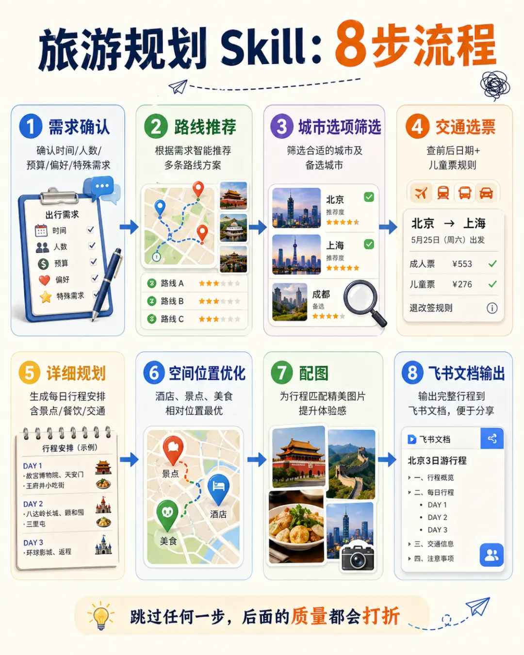 二、旅游规划 Skill:8 步流程背后的设计逻辑
