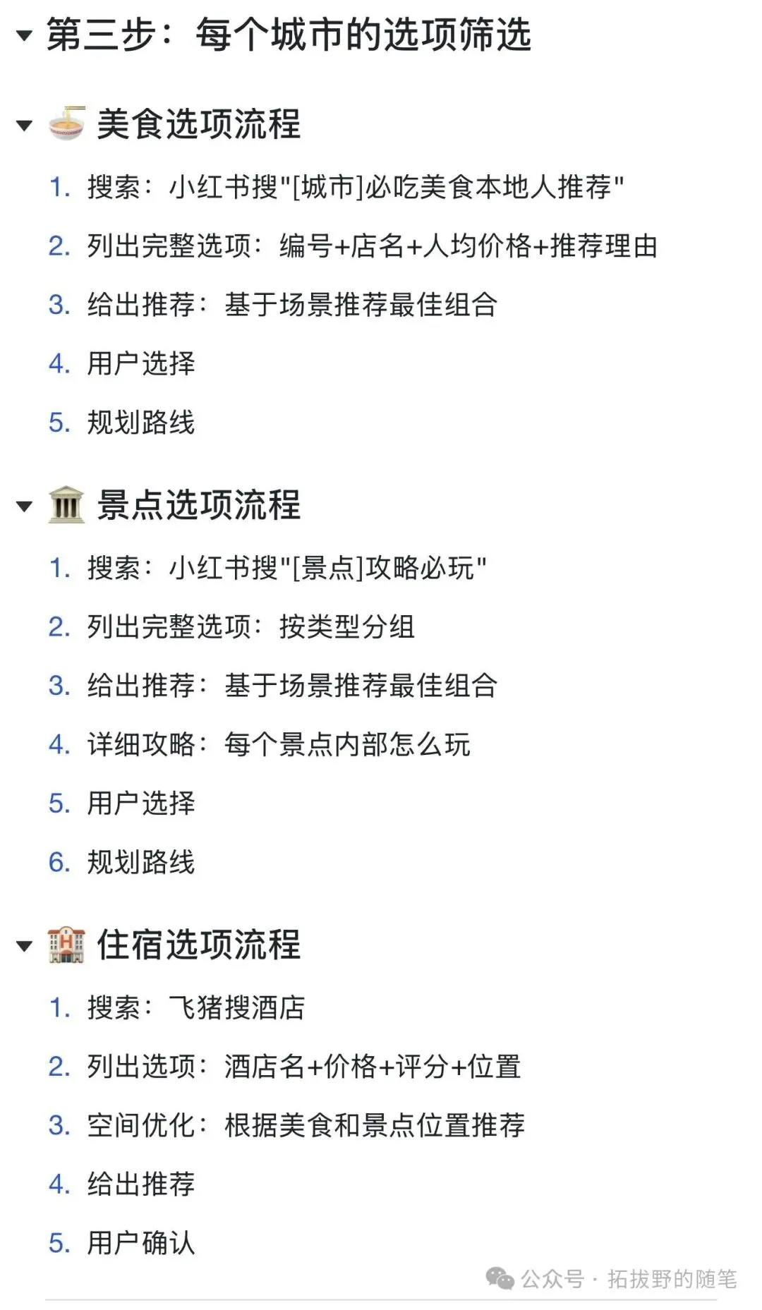 ▲ 旅游规划 Skill 内容:每个城市的选项筛选