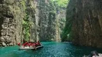 乘一叶轻舟穿行碧波之上,看两岸春日繁花缀于崖间,山风裹挟草木清香扑面而来。山水相映间,所有喧嚣都被隔绝在外,只剩满眼的清幽与安宁。