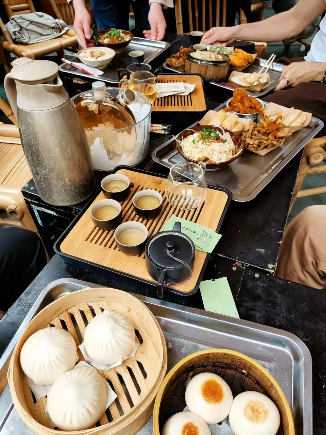 已经是午饭时间,由于小松树是素食者,大家决定去太古里隔壁的大慈寺吃素斋喝茶。