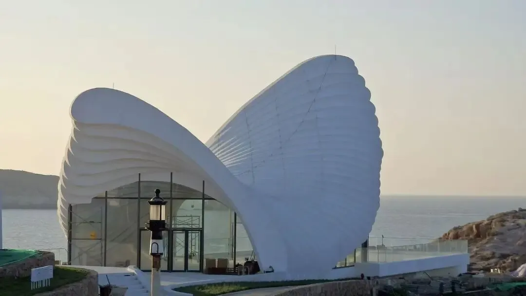清晨五点,羽翼婚礼堂的白色建筑被第一缕光染成粉色。早起的人拥有整片天空的馈赠——看太阳从海面升起,是新的一天最好的仪式。