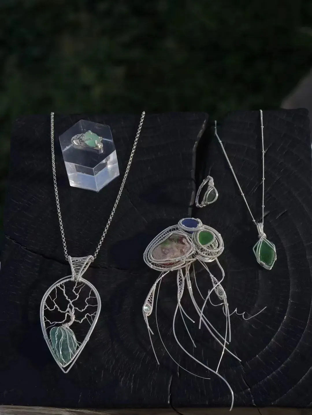 海浪把碎玻璃打磨成圆润的“海玻璃”,像大海流过的泪,被冲上岸。用金属线把它们绕起来,做成一件独一无二的艺术饰品。指尖碰触的是大海的赠予,成品是你和这座岛之间的一枚信物。