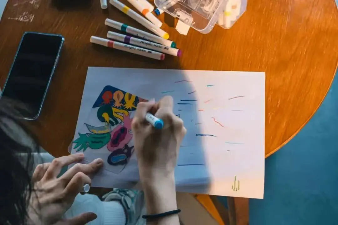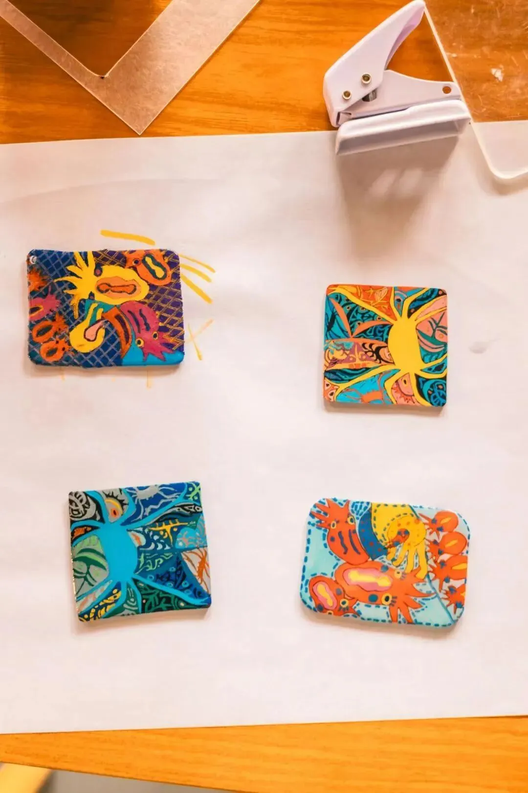 渔民画是岛上的老手艺,线条粗犷却有股海的味道。你可以选一张线稿——灯塔、浪花、佛手石、海岸线,或者岛上不知名的野花。然后用热缩片把它缩小,变成钥匙扣或装饰画。