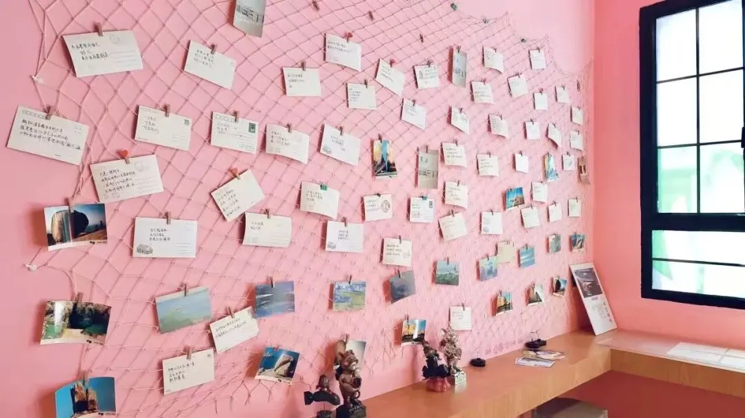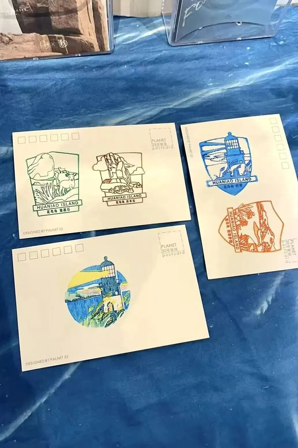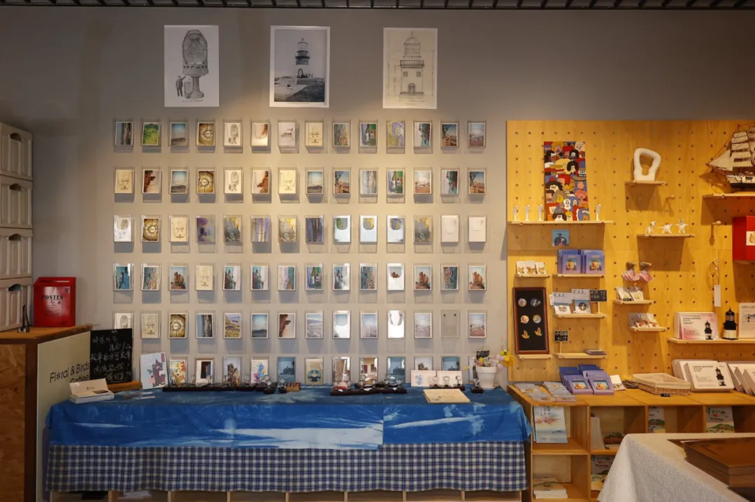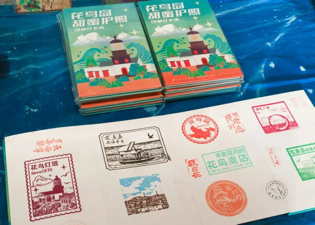 店内有一面明信片墙和多款打卡印章——灯塔、蓝眼泪、码塔线、花鸟村……每盖一个章,就像在收集岛屿的碎片。集满一本,便是属于你的花鸟记忆。