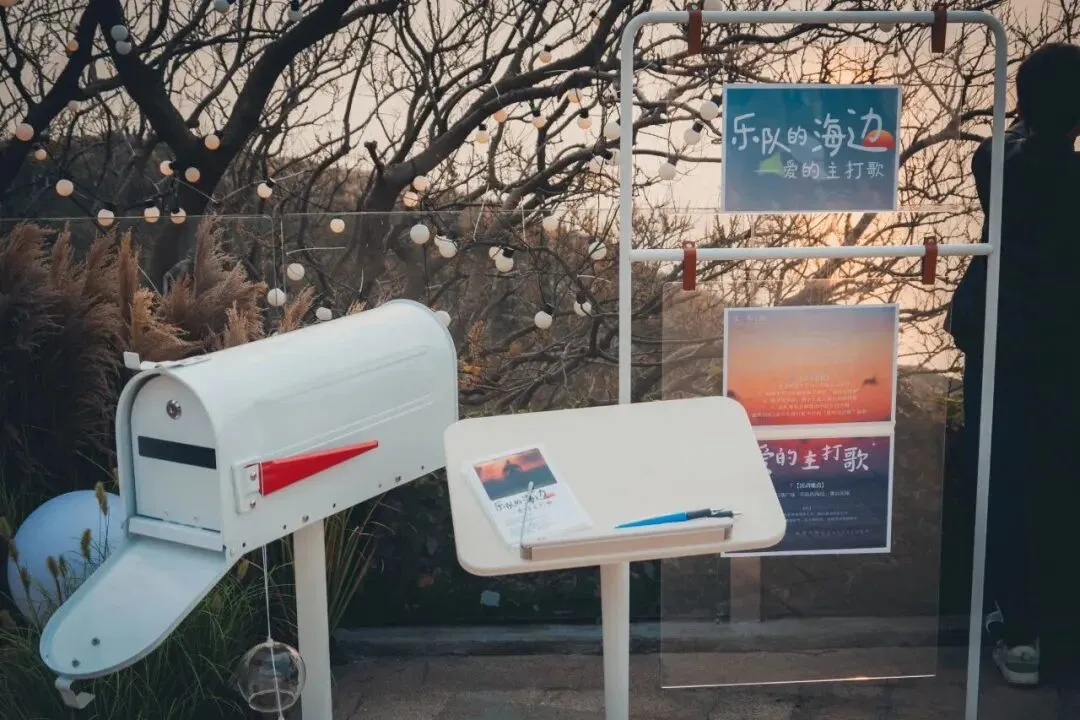 傍晚四点半,天光还亮,乐队已经在海边调音。在卡片上写下一首歌名——那首你一听就会想起某个人的歌——投进舞台旁的白色信箱。乐队会随机抽取,然后前奏响起,海浪声变成副歌的伴奏。落日、海风、吉他声,加在一起就是一个值得记住的傍晚。