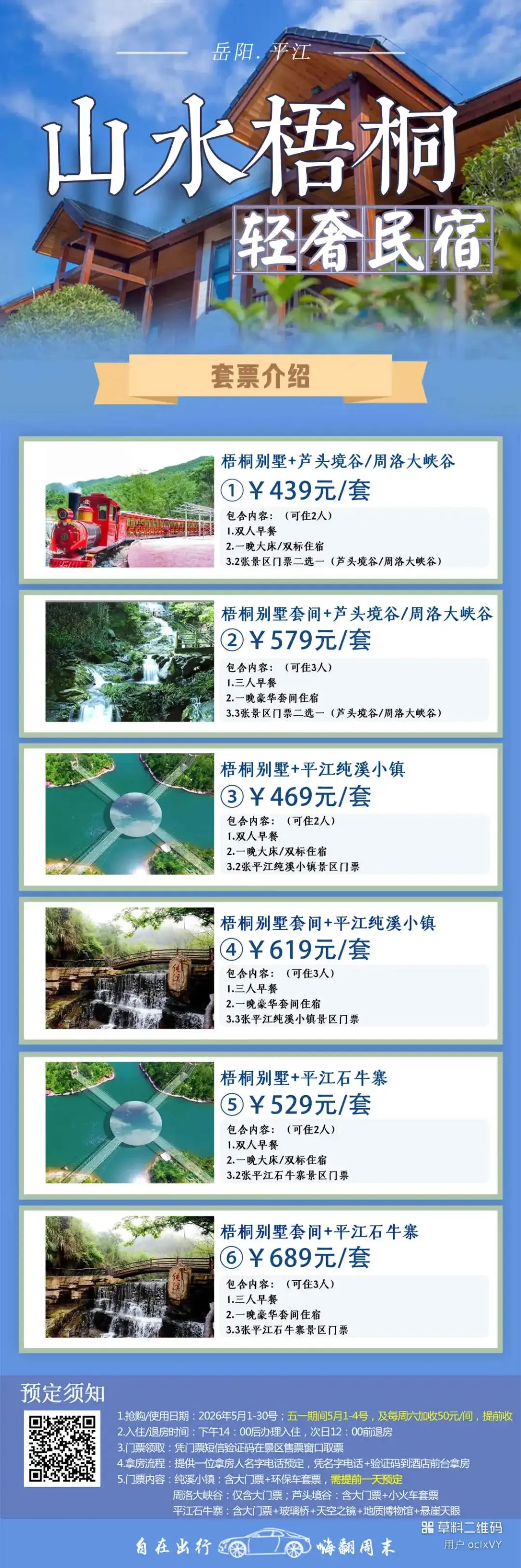 ②山水梧桐轻奢民宿(距离芦头景区景区37公里,开车约54分钟),住宿参考价格如下: