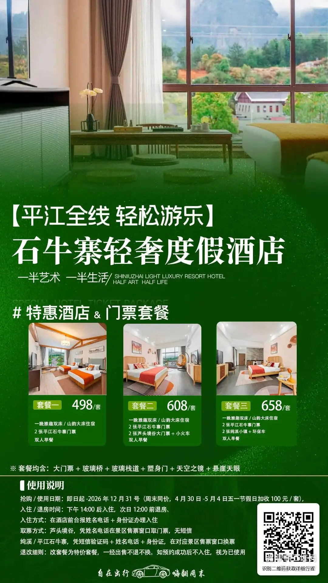 ③石牛寨轻奢度假酒店(距离芦头境谷景区55公里,开车约1小时),住宿参考价格如下: