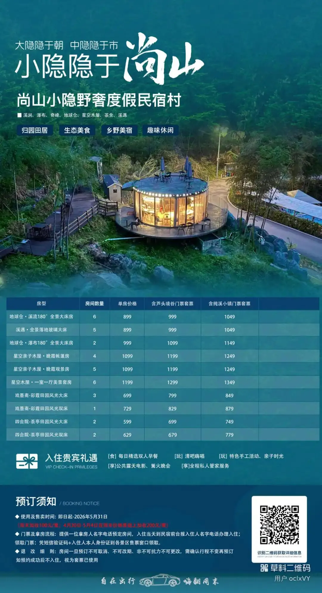 ④尚山小隐野奢度假民宿村,住宿参考价格如下: