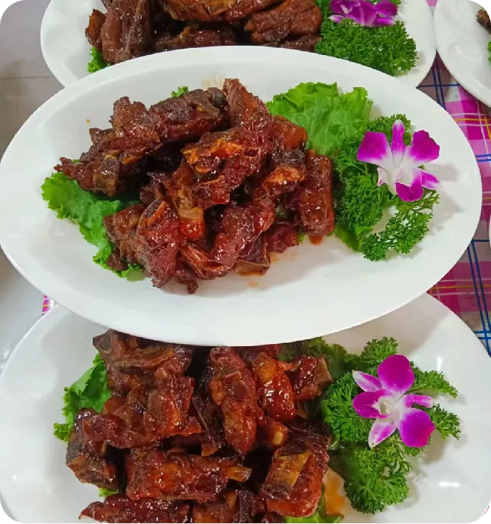 精选当地散养食材,推荐红烧排骨、土鸡焖花卷等招牌菜。肉质鲜嫩,汤汁浓郁,味道醇厚地道。