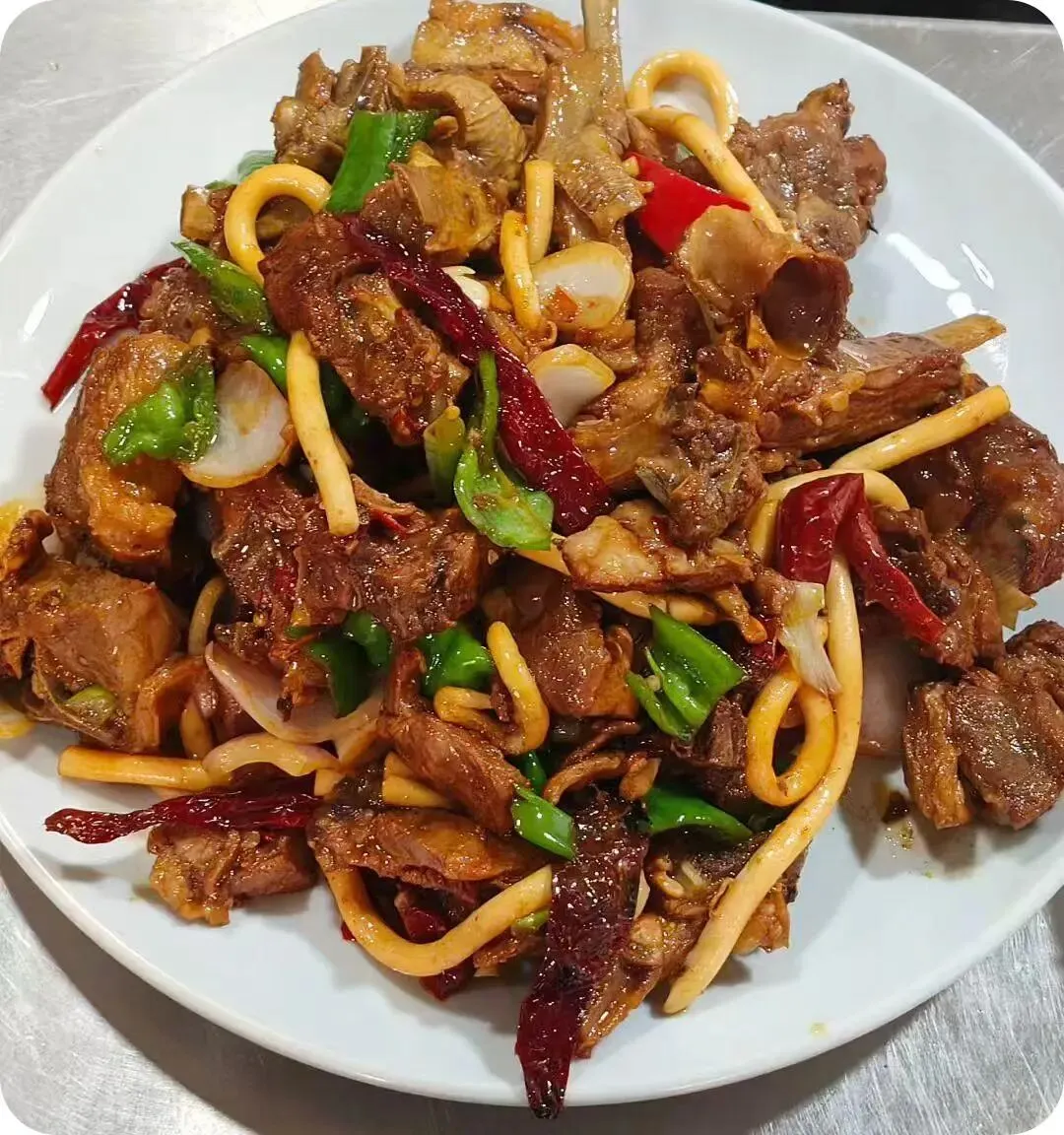 必点“爆炒鸡”,选用新鲜食材猛火爆炒。锅气十足,口感丰富,是极具西北风情的美味。