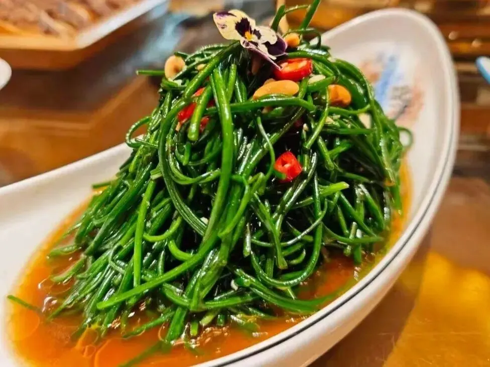 主打沙葱、苦苦菜等沙漠野菜。口感脆嫩清爽,清热降火,完美中和了肉类的油腻,充满浓郁的地域特色。