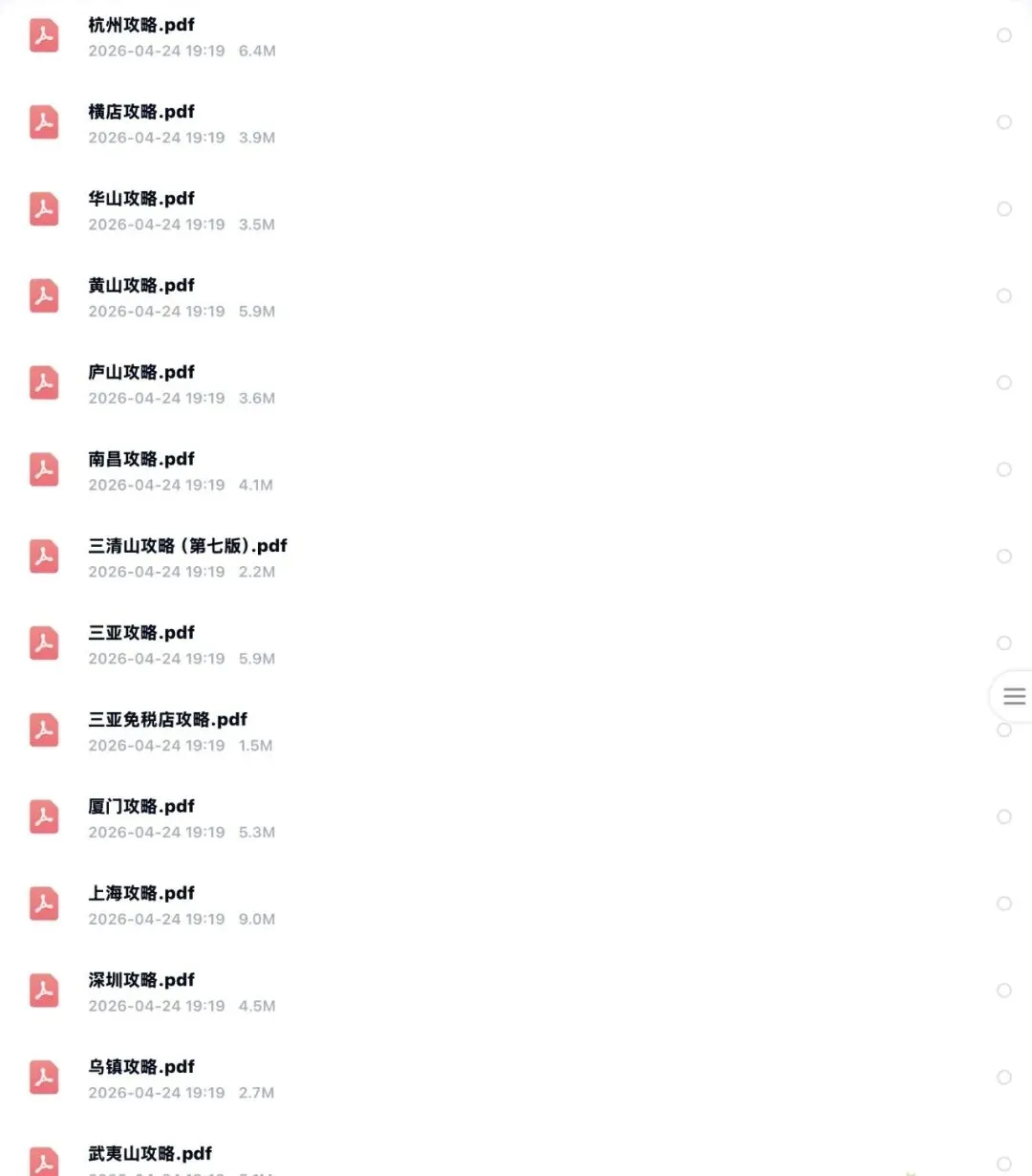 所有攻略文件均已打包分类完毕,PDF高清完整版,打开就能直接使用,实时适配五一节假日出行政策与游玩节奏。