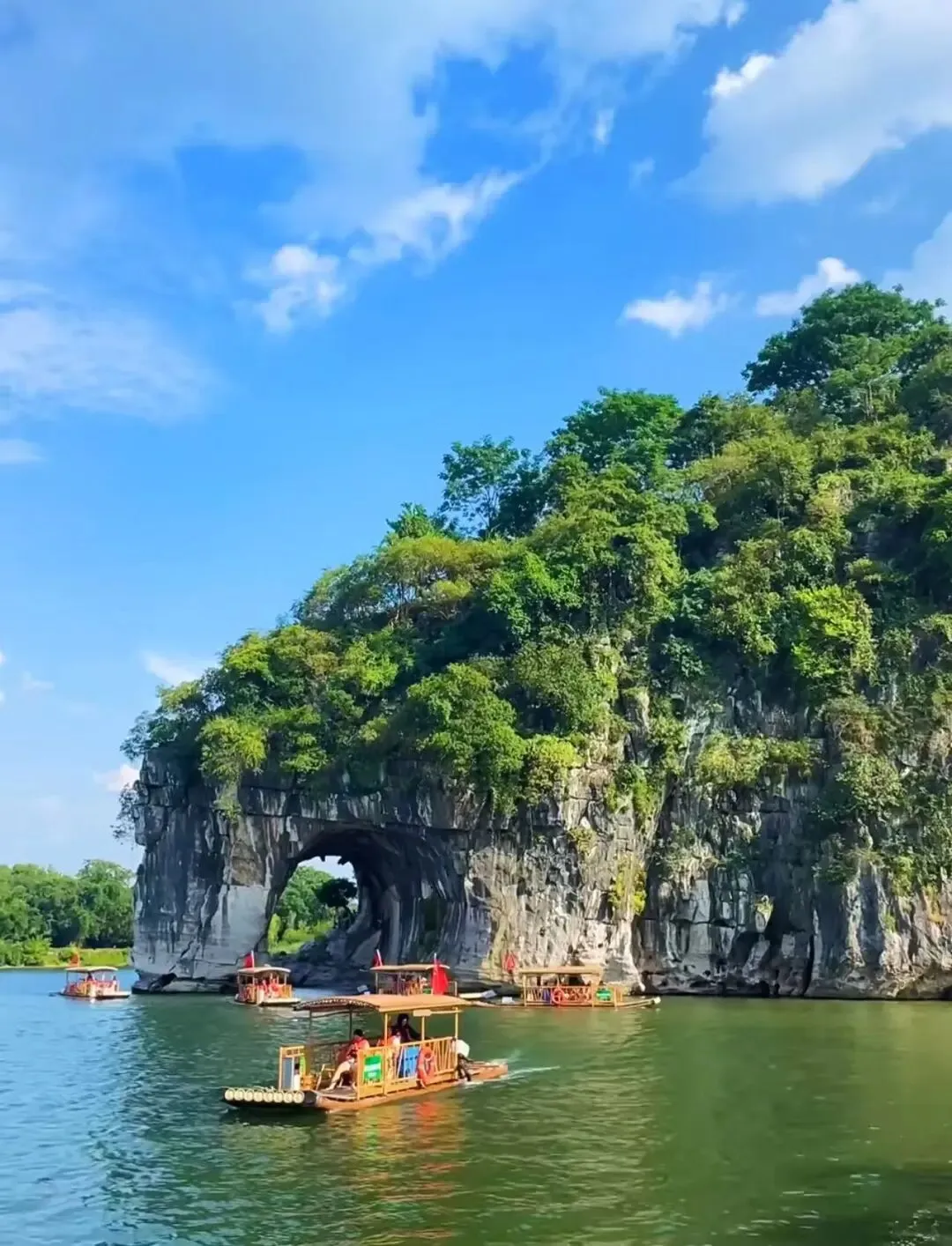 象鼻山:桂林标志性景观,免费开放!提前1天在官方平台预约,外围步道就能拍全景,不用信野导带路收费,随手一拍都是氛围感大片,解锁桂林专属记忆点。