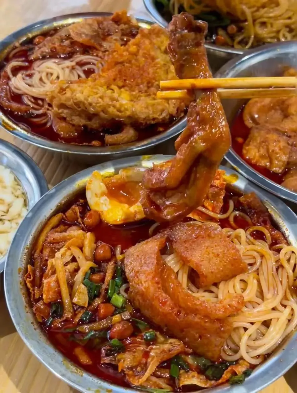 螺蛳粉:必吃!加炸蛋+鸭脚,臭香直击天灵盖,本地巷弄小摊比网红店更地道,解锁最正宗的桂中风味,人均15就能吃到满足。