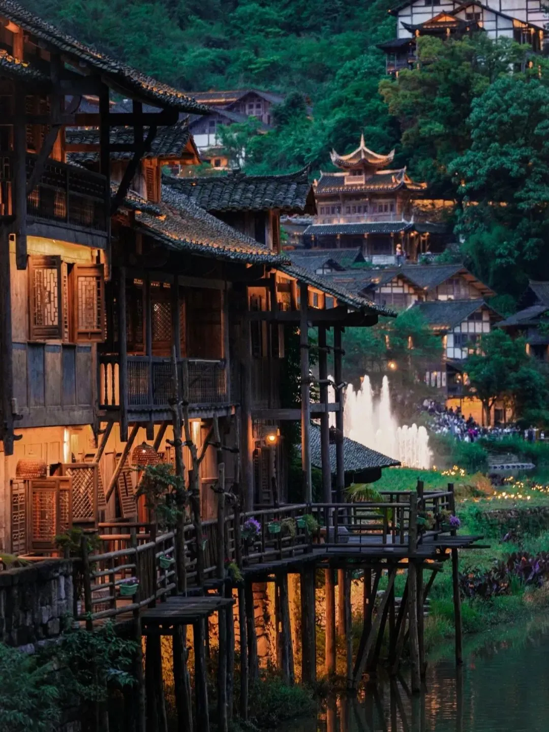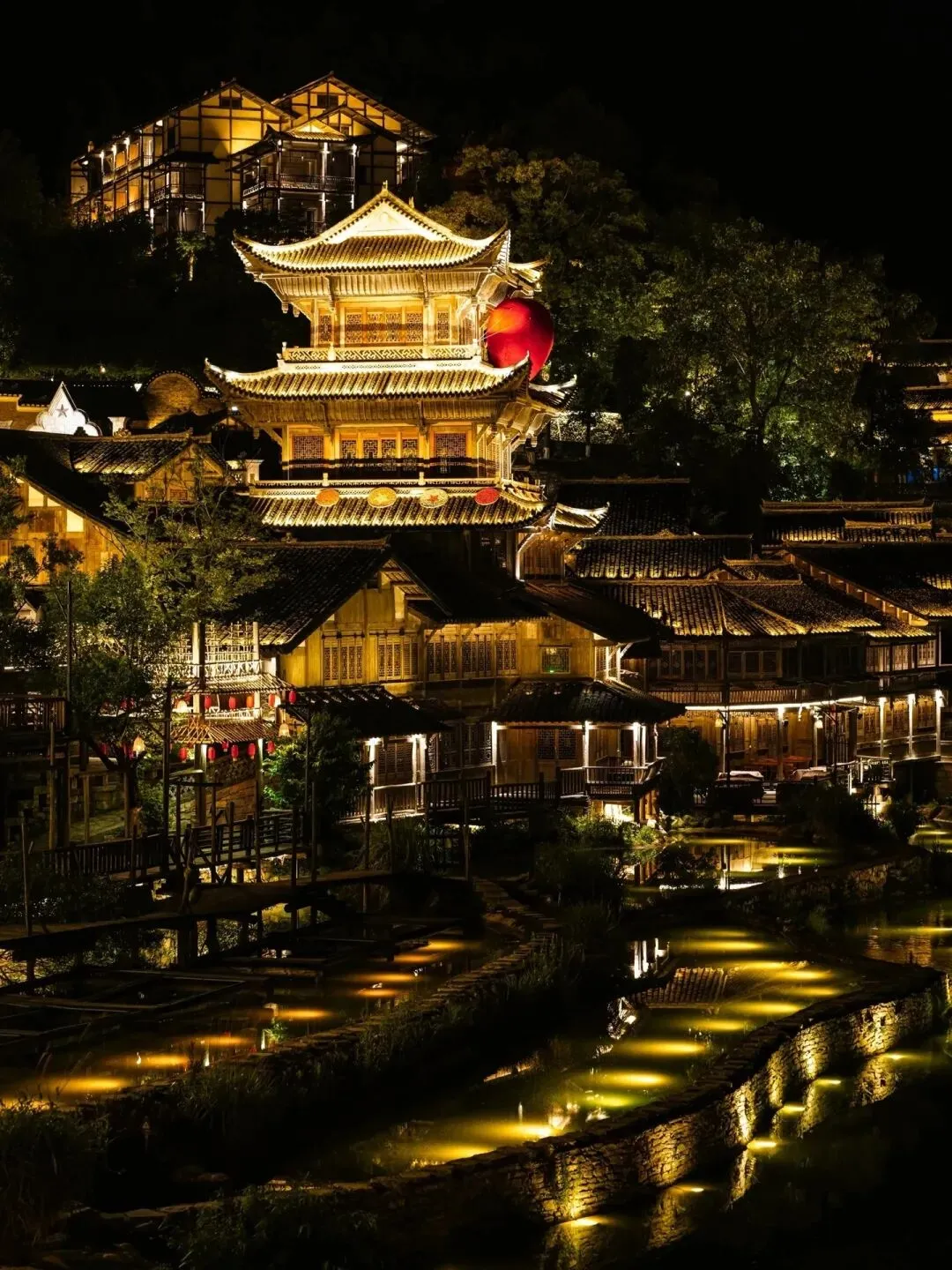 ✨黔北私藏古寨,临水吊脚楼错落,夜景温柔出圈💕