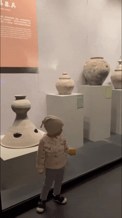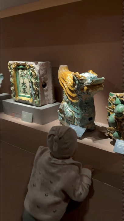暖暖则对北魏时期的陶俑和壁画感兴趣,说“在课本上看见过,见到真的了”。