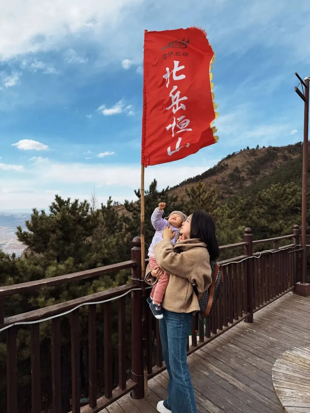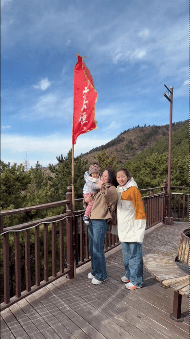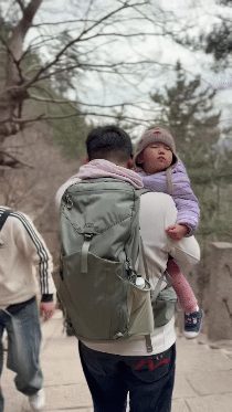 下山时,因为风太大缆车关闭,我和于大夫只好一半抱,一半抬婴儿车,下山累瘫了。