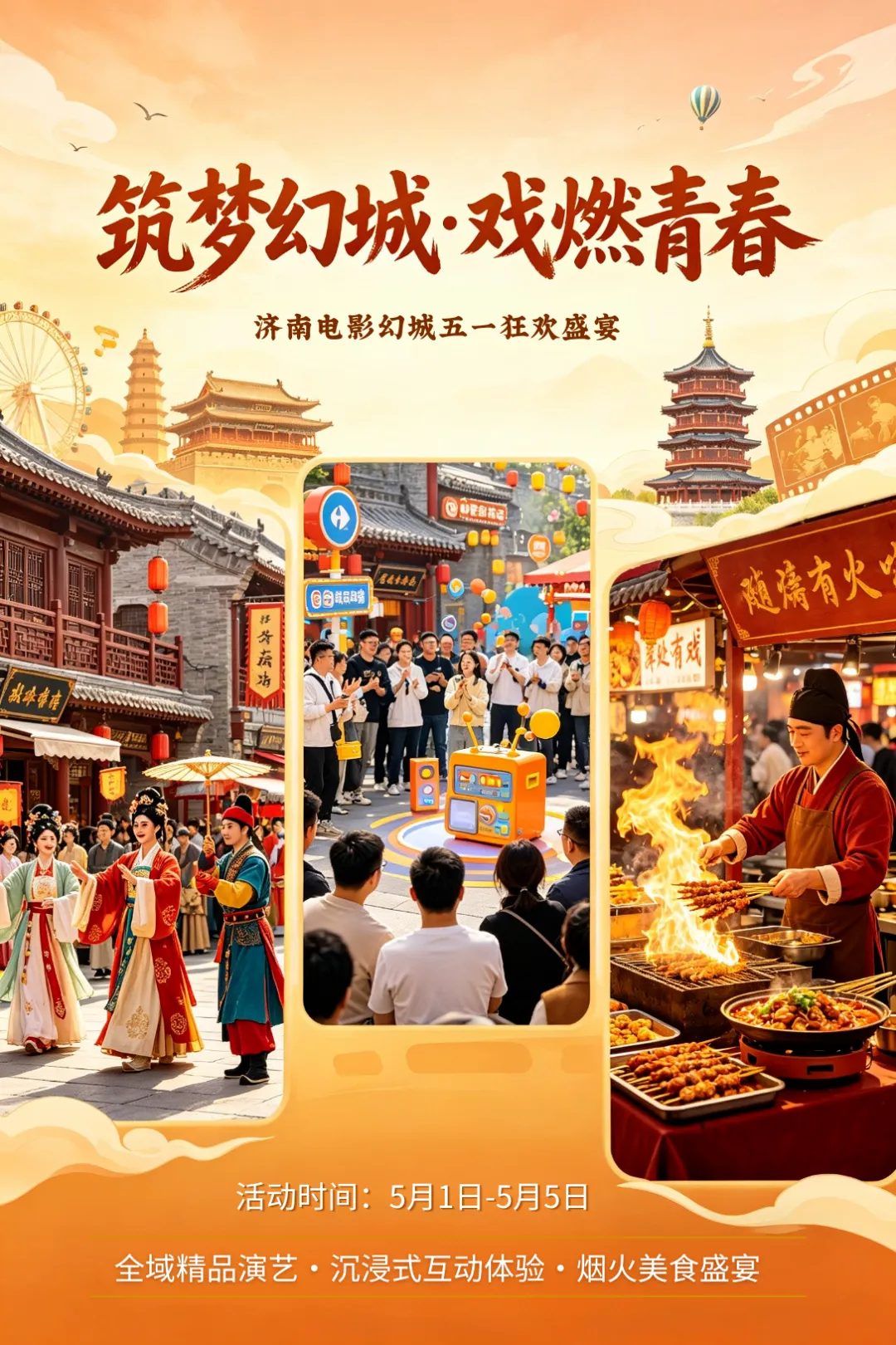 五一假期,济南电影幻城以“筑梦幻城·戏燃青春”为主题,用全域演艺与沉浸互动,为你打造一个高质感、低成本的出片出游目的地。