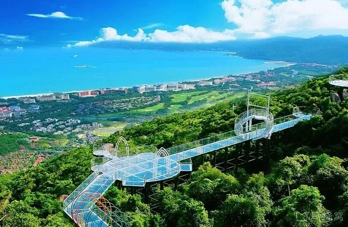 亮点:热带雨林秘境,绿树成荫,温度比市区低 3-5℃;打卡过江龙索桥、玻璃栈道,俯瞰亚龙湾海景,满眼绿意超治愈。