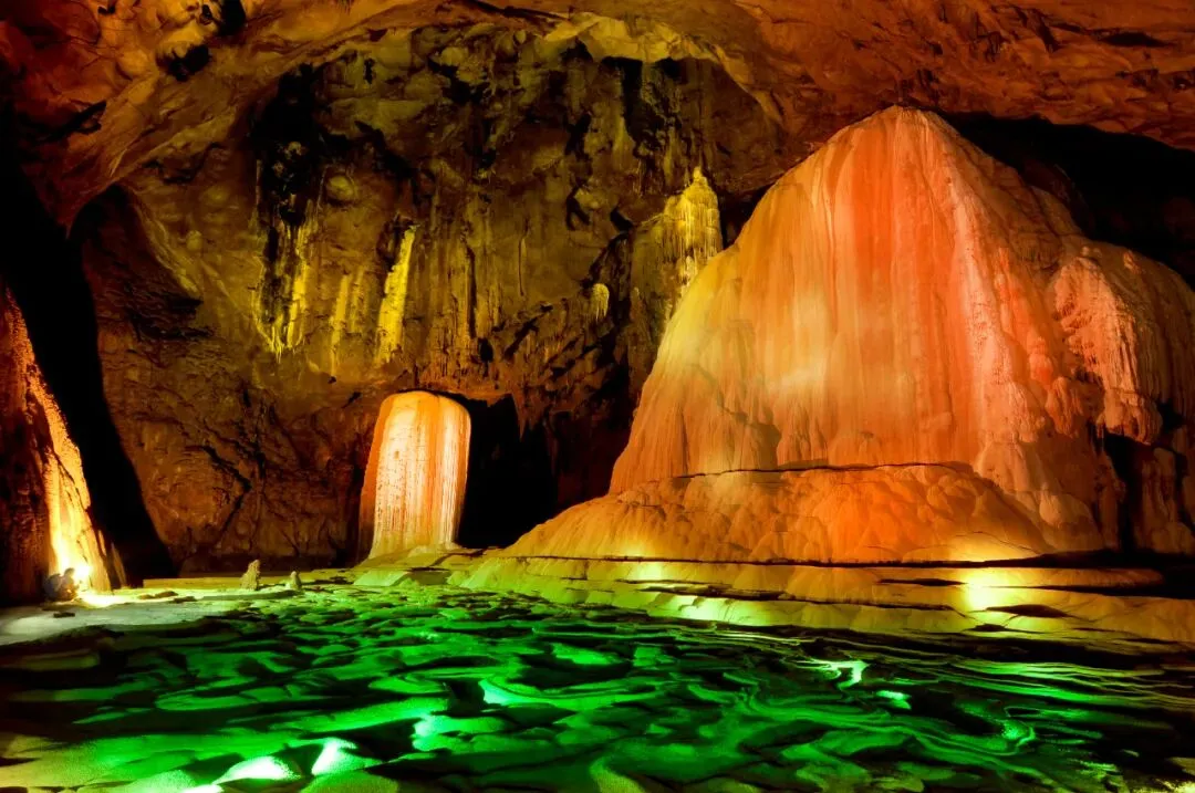 长乐宫:亿万年天然溶洞秘境,形态各异的钟乳石、石瀑、莲花盏景观精致奇幻,全方位解锁独一无二的地心自然奇观。