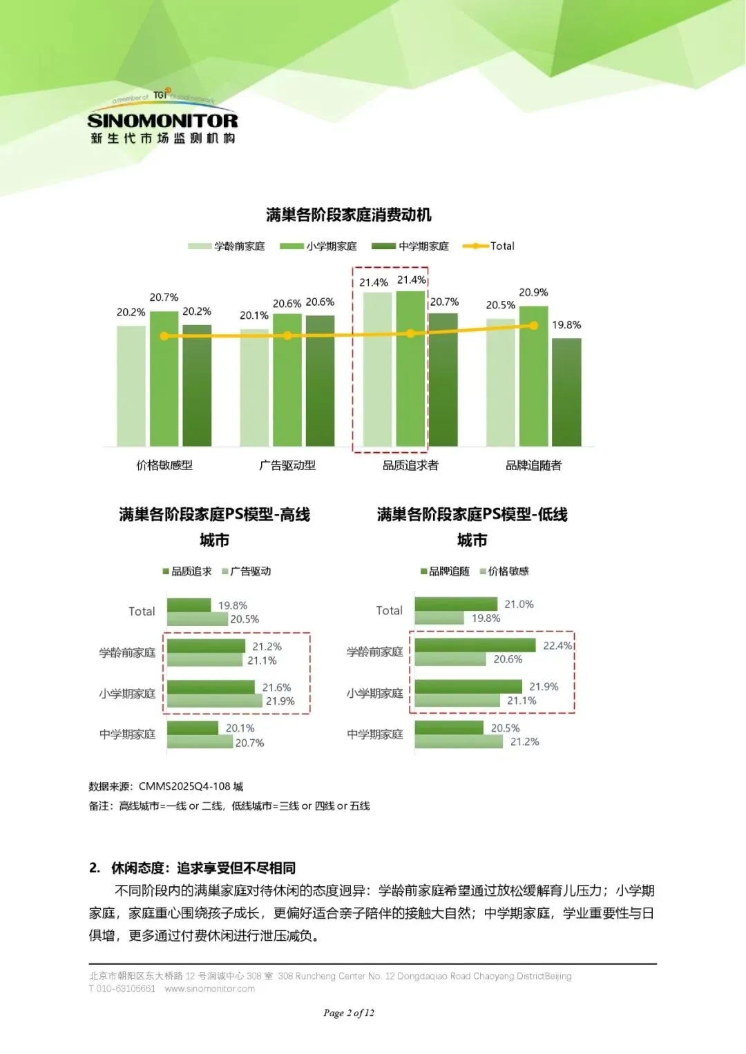 - 消费力:满巢家庭整体消费力不弱于总体人群,其中低龄家庭(学龄前及小学期)尤为突出。