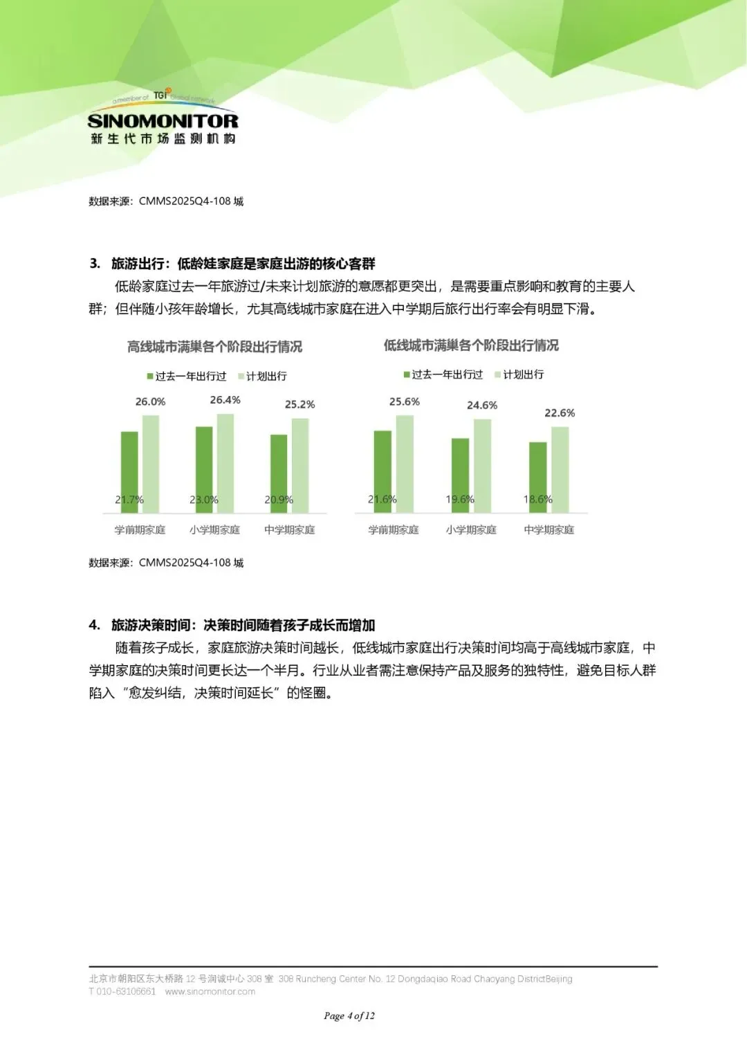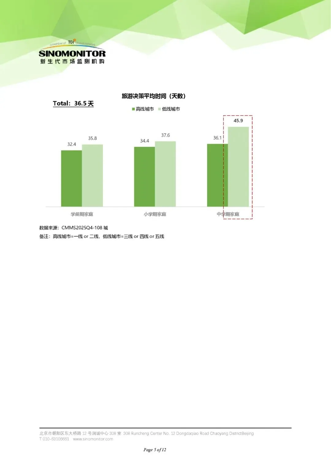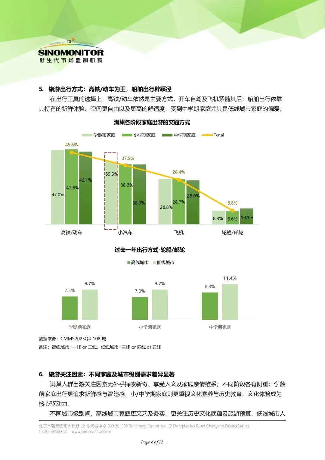 - 中学期家庭:高线城市家庭出行率明显下降,低线城市家庭则更偏好船舶出行,因其提供新鲜体验和更高舒适度。
