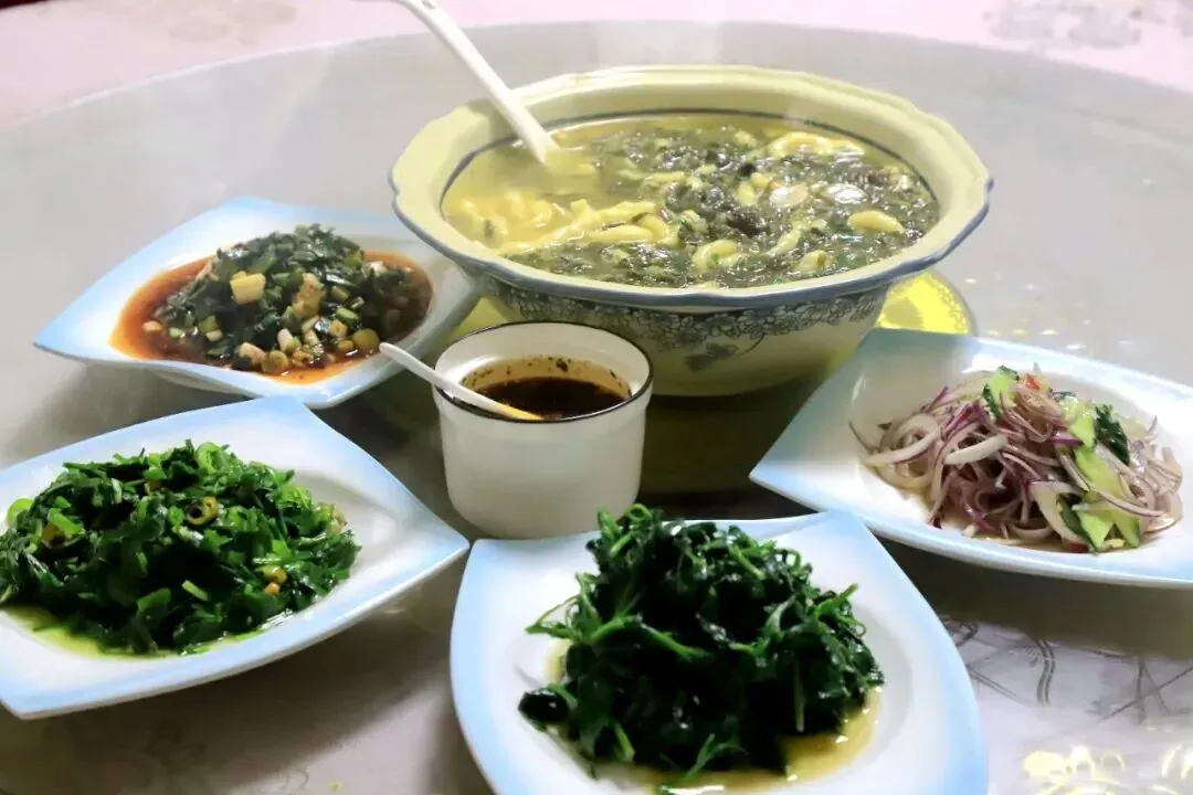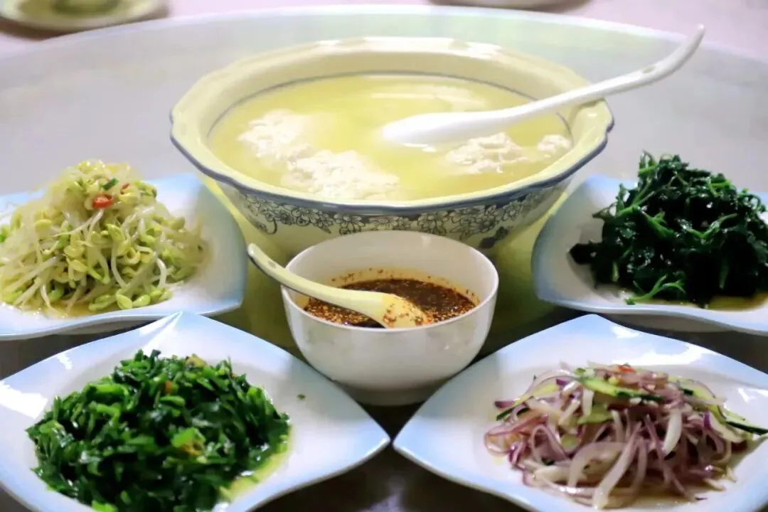 银杏果炖鸡(滋补养生)、核桃饼(酥脆香甜)、浆水鱼鱼(酸辣开胃),还有特色凉皮、饸络面、麻花、甜胚子……