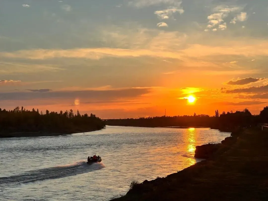 你可以坐上游船等日落,太阳落山时,整条河面都在发光,船慢慢开,风轻轻吹,十分惬意。