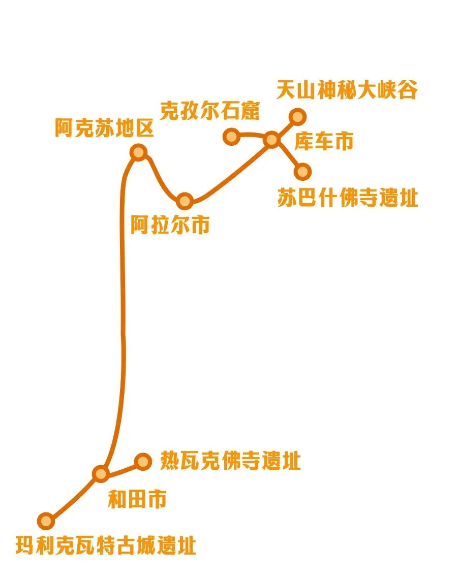这条线路以和田市为整段旅程的出发地,会到达阿克苏市、库车市,能够体验到更浓郁的人文风情。