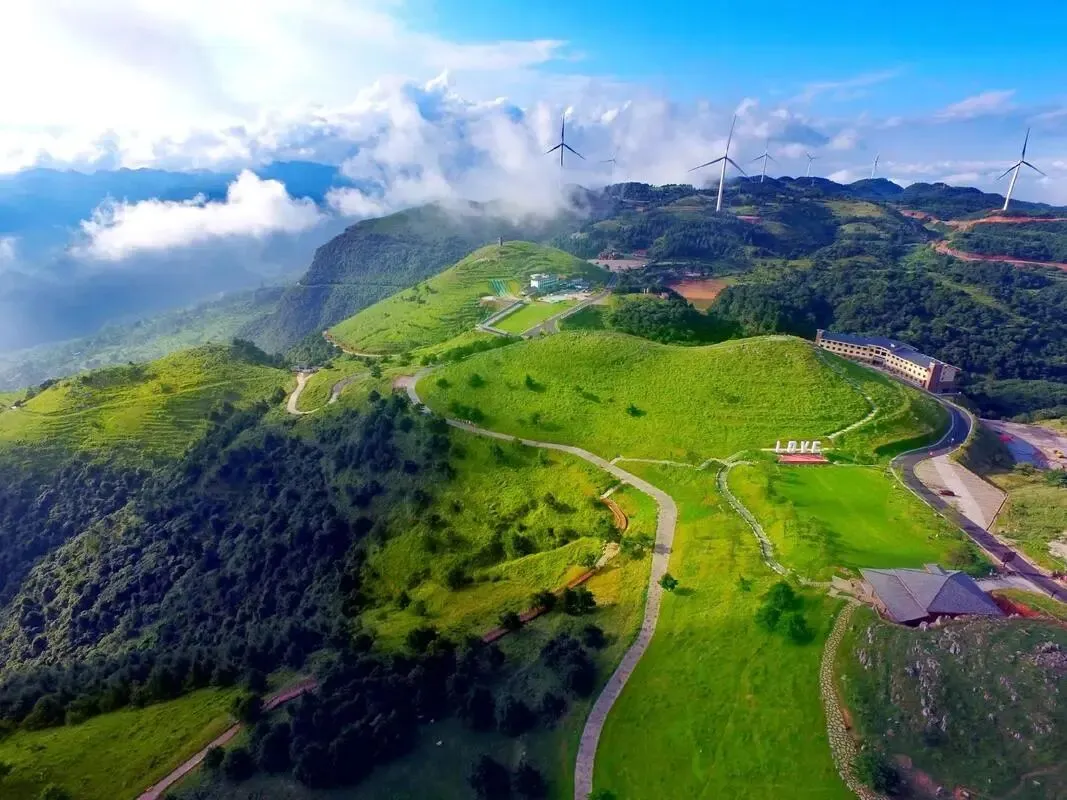 位于夷陵区分乡镇的百里荒,平均海拔1200米,是宜昌周边最清凉的避暑胜地。春夏之交,万亩草甸绿意盎然,风车在山脊线上缓缓转动,牛羊在草地上悠闲吃草——那种辽阔与宁静,让人忘记自己身处三峡腹地。