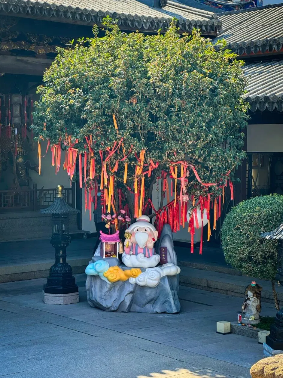 院内有可爱的Q版月老,还有很明晰的敬香、求签指引