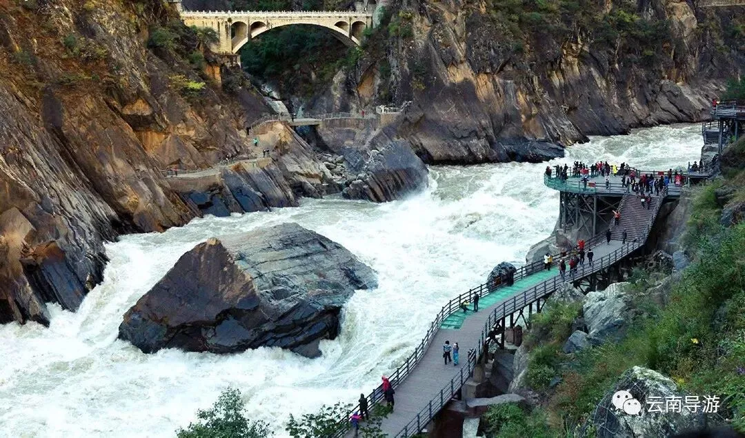 ✨ 核心看点:①上虎跳观景台——峡谷最窄处,江心有一块巨石,相传猛虎借此跳过江面,故名“虎跳峡”;②中虎跳徒步——深入峡谷底部,感受金沙江奔腾咆哮的震撼。