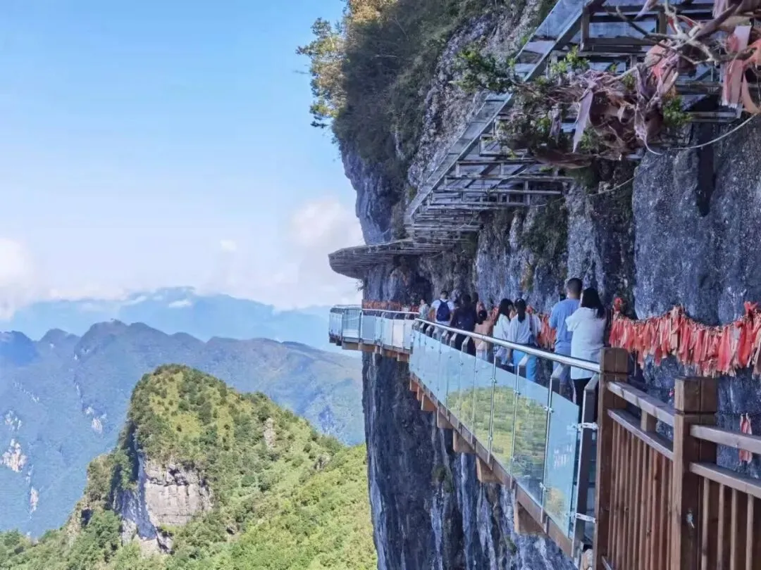 ·玻璃桥:横跨川渝两省,脚下深渊,惊险刺激,站在桥上能清楚的一览独秀峰的神奇魅力。