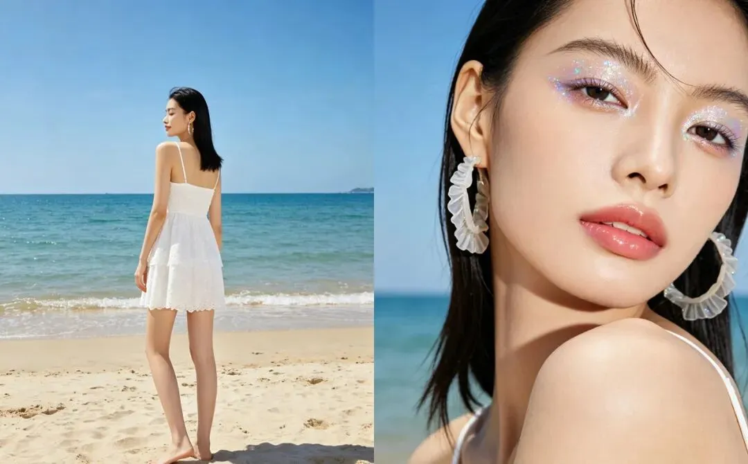 - 细节:淡粉色腮红轻扫苹果肌,加点细闪高光,阳光下自带通透感
