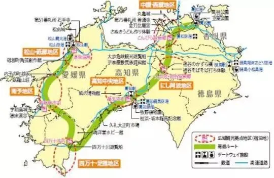 路线:高松→丸龟→金毗罗温泉乡→大步危→蔓桥→祖谷溪→高知→宇和岛→伊予大洲→道后温泉→松山