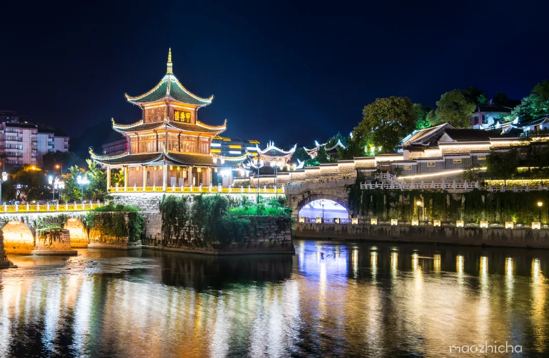 甲秀楼是贵阳的地标,但它的价值不在于建筑本身有多精美,在于它把贵阳这座城市的气质浓缩在了一个点上。这个楼建在南明河上,白天看普普通通,晚上亮灯之后整个倒影映在水里,周围是现代化的高楼和老街区混在一起,这种新旧交织的画面很贵阳,不是刻意保护老建筑也不是疯狂拆迁盖新楼,是该留的留该建的建,不拧巴。
