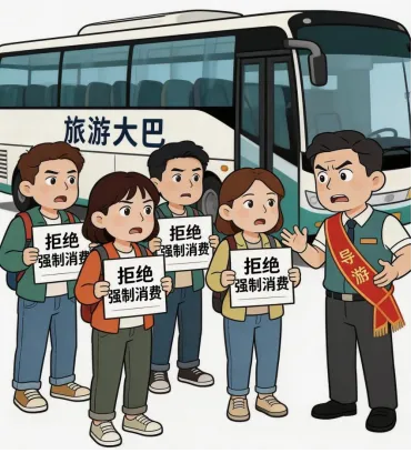 1.言语或行为施压 导游通过威胁、言语侮辱、限制离店、故意拖延时间或拒绝继续行程等方式,强迫游客购物或参加付费项目。例如,“不消费够额度不能上车”“不参加自费项目就自己想办法回酒店”等。有的导游会指责游客“小气”“不懂规矩”;更严重的会采取弃置手段,将游客滞留购物场所,甚至限制游客活动自由。 2.诱导或欺骗消费 导游往往虚构商品功效,诱骗游客购买质价不符的商品。例如将普通玉石宣传为“有养生功效的宝玉”。还有的会虚构优惠政策,谎称“这是政府补贴价,只有团队客才能享受”“这批商品是特殊渠道来的限量款”。这些行为都涉嫌虚假宣传,违背消费者真实意愿。 3.擅自变更行程 未经游客同意,导游减少游览时间、增加购物点、插入合同以外的付费项目。例如合同约定游览某景区2小时,导游却压缩至30分钟,将节省的时间用于带客购物;或者在行程中擅自增加未约定的购物点,美其名曰“体验当地特色”;甚至在旅游车上软硬兼施推销商品。 4.其他变相强制手段 包括但不限于与商家串通设置消费陷阱,使游客难以脱身;利用游客在异地孤立无援的处境施加心理压力;以“参观工厂”“体验民俗”为名行推销之实;采用软暴力手段,如不停劝说、跟随、冷脸相对等方式干扰游客自主选择。 二、面对导游强制消费,怎么办?