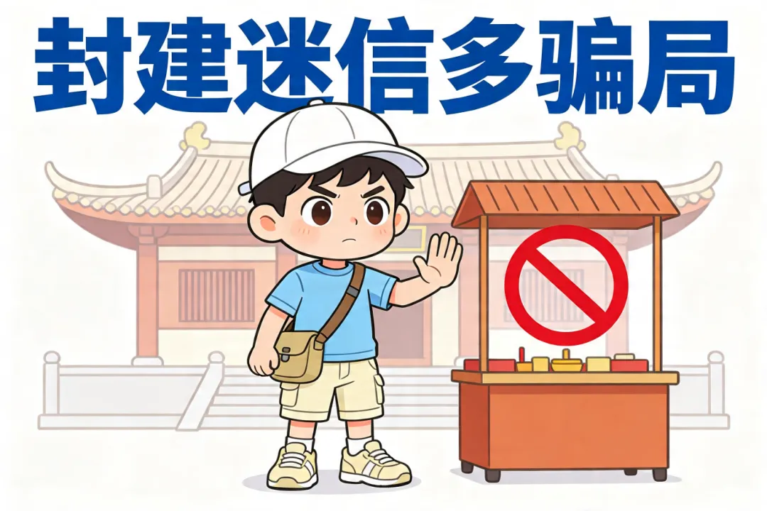 到寺院、庙宇等宗教场所参观旅游时,遇到兜售天价香火或算命卜卦,应提高警惕,不要轻信迷信言论,避免上当受骗。