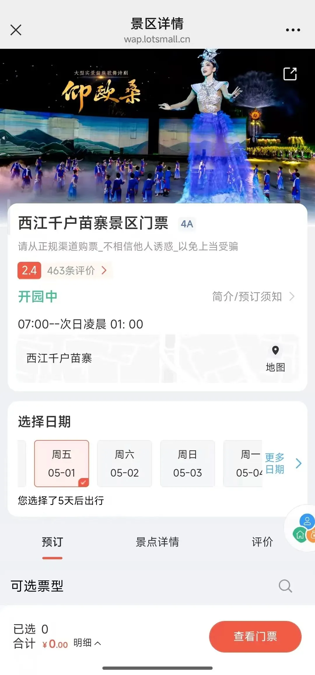 为了获得更好的游玩体验,建议您出行前关注西江千户苗寨景区微信公众号,了解官方最新公告。若景区发布当日预约人数已趋饱和,您可以预约当日之后的景区门票或错峰游览周边景区景点哦!